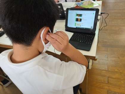 5年生理科の授業後の休み時間の様子です。タブレットで「NHK for school」を見ています。