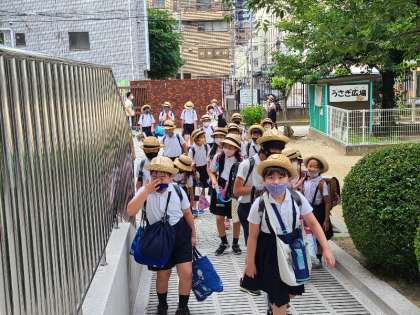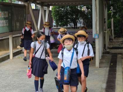 おはようございます。セミの声が響くなか、子どもたちが元気に登校してきました。