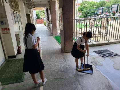 美化委員の児童が、職員室前の掃除をしてくれています。美化委員の皆さん、いつもありがとう。