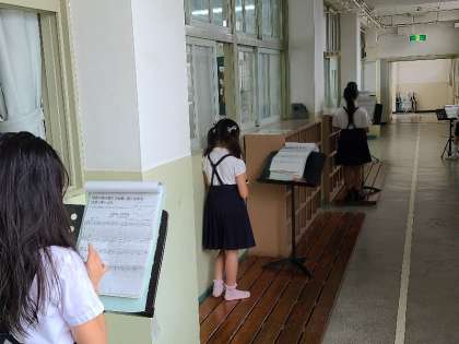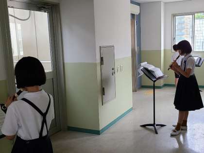 5年2組の音楽の様子です。リコーダーで「こげよ マイケル」「小さな約束」などを演奏していました。廊下を伝って職員室まで素晴らしい音色が聴こえてきました。