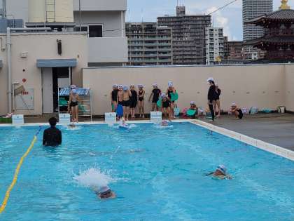 4年生の浮く・泳ぐの様子です。プールの場所を工夫して、各自の目標に合わせて活動していました。