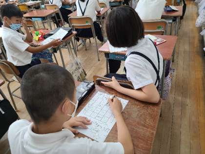 6年2組の様子です。オリンピックの競技種目のビンゴ大会をしていました。種目数が多いので簡単にビンゴにはなりません。