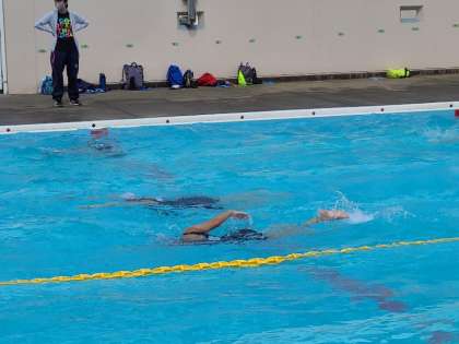 後半はコース別の練習です。伸びのある泳ぎを意識して練習していました。