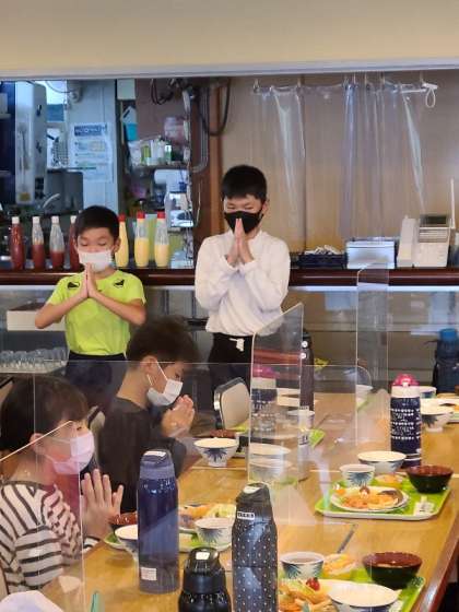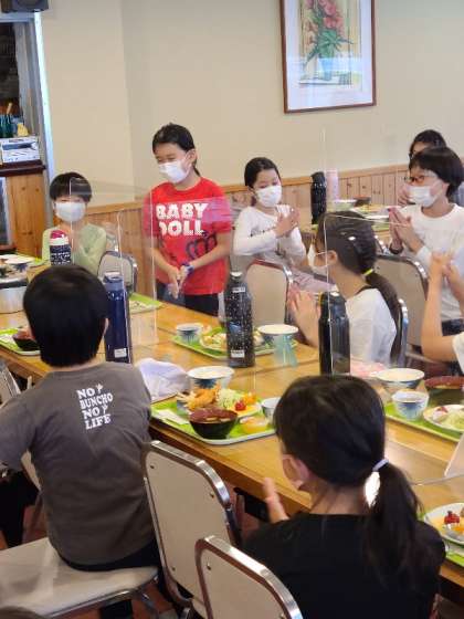 食事の前に、誕生日の児童に「ハッピーバースデー」の歌を皆でプレゼントしました。