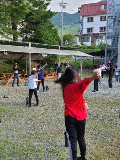 朝の集いの様子です。発熱等の体調不良もなく、全員元気に2日目を迎えました。