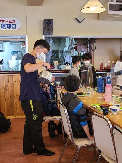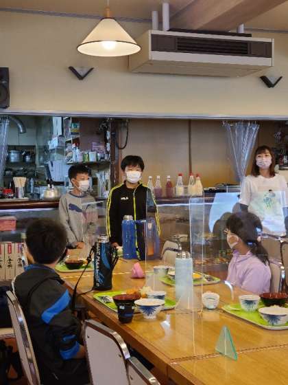食事係の元気な挨拶で頑張っています。「いただきます。」
