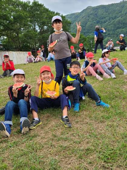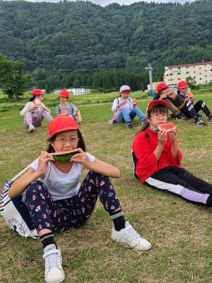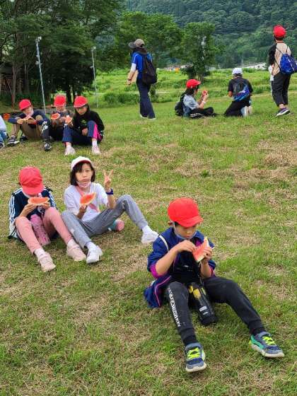 3時のおやつは、甘く冷たいすいかです。