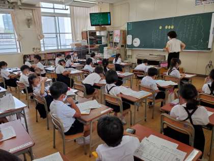 始業式後の1年生の授業の様子です。夏休みの課題の確認などをしていました。