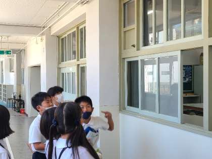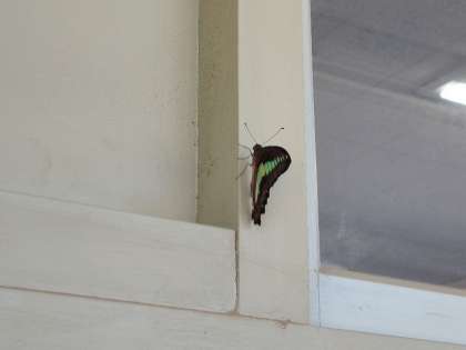 5年生の児童が理科室前の廊下で蝶々を見つけました。アオスジアゲハかな?