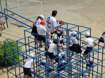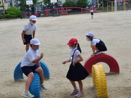 久しぶりに運動場で遊ぶことができました。みんな遊びをする学級もあります。