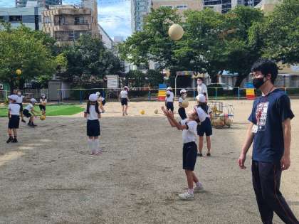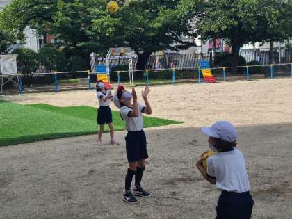 2年1組の体育の様子です。用具を操作する運動遊びの様子です。易しい動きから、いろいろな動きへと挑戦していました。