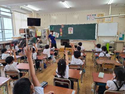 1年1組の食に関する指導の様子です。とても楽しい授業で、子どもたちも元気に手をあげて取り組んでいました。