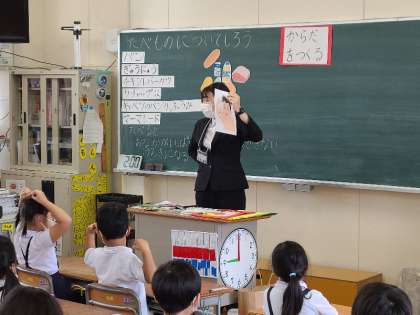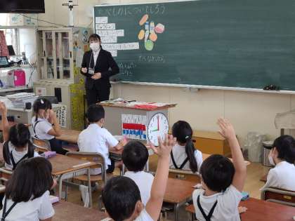 本日4時間目1年3組で、実習生による食に関する指導の授業研究を行いました。