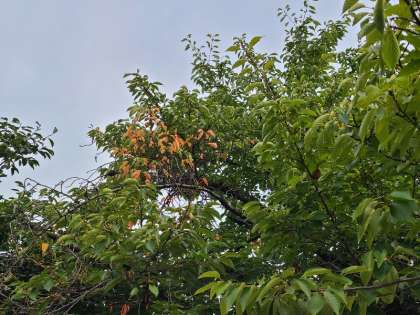 ウサギ小屋横の桜の木です。葉がいろづいてきました。