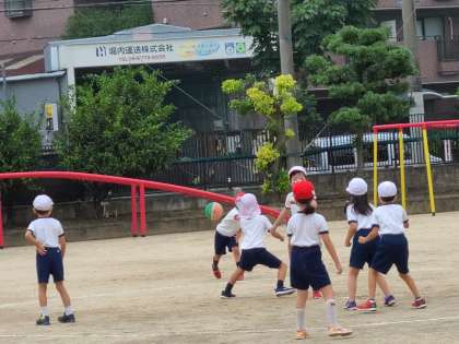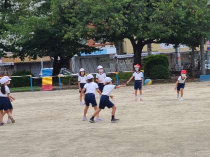 2年2組の体育の様子です。簡単なボール操作でゲームをしました。声をだして協力しながら楽しく活動しました。