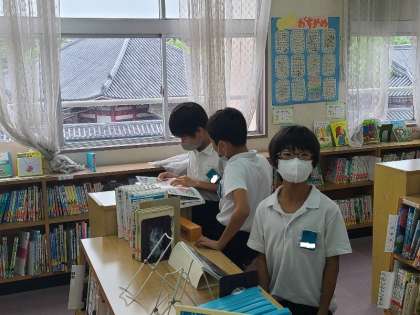 雨のためいつもよりたくさんの児童が来館してくれました。図書委員の児童が、「先生で35人目です。」「静かに本を読んでください。」等といきいきと活動していました。