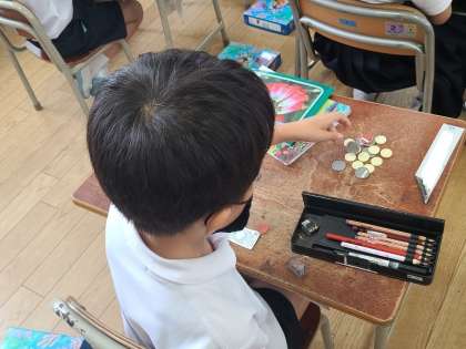 1年2組の算数の様子です。さんすうセットを活用して学習していました。