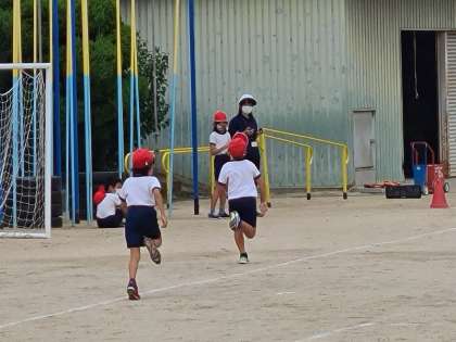 3年1組の体育の走の運動です。50mを走りました。2年生のタイムより速く走れるように頑張りました。