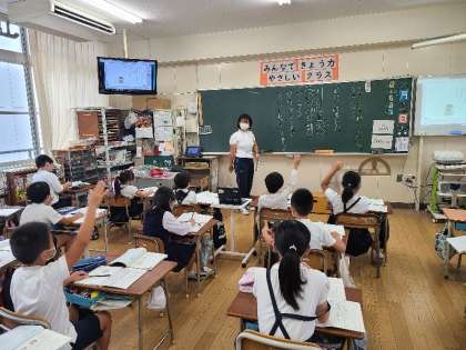 3年1組の国語の様子です。実習生の先生が授業をしています。