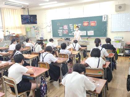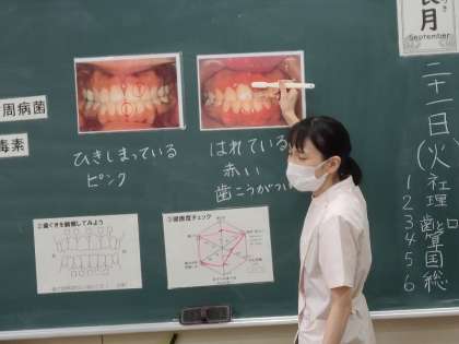 本日2・3時間目に6年生が「歯・口の健康教室」を行いました。学校歯科医の西本先生にも指導の様子を参観していただきました。