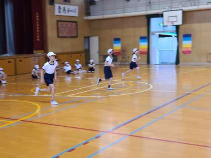 4年生が、新体力テストの50m走とシャトルランの測定をしました。シャトルランでは、みんなの「頑張れ」の声が体育館に響いていました。