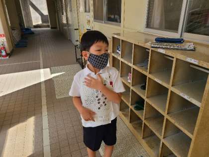 なかよしの様子です。大きな花丸をもらったので見せてくれました。
