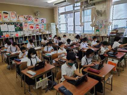 2年1組の様子です。2組が授業研究のため、静かに自習しています。一人ひとりが状況を判断して行動できています。素晴らしいですね。
