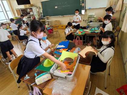 3年1組の図工の様子です。クルクルランドの作成です。個性的な作品ができあがってきました。