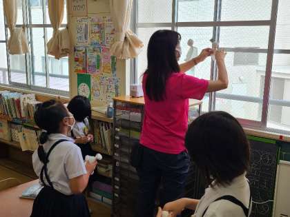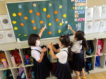 1・2年生の教室では、「明日天気になりますように。」とてるてる坊主を作っていました。