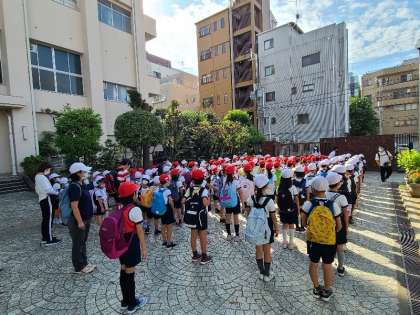 今日は1・2年生の遠足です。秋の大阪城公園で楽しく活動します。昨日からてるてる坊主をつくったおかげで、とても良い天気になりました。