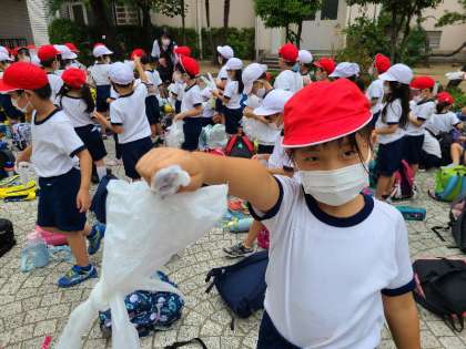1・2年生が遠足から帰ってきました。「水筒のお茶全部飲んだよ」「楽しかった」といろいろ感想を聞かせてくれました。どんぐりも見せてくれました。
