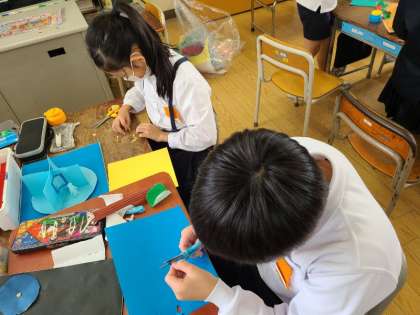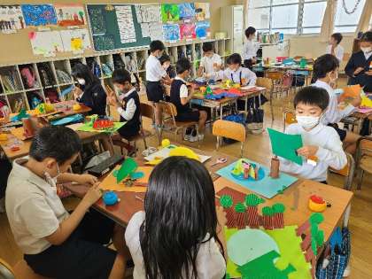 3年2組の図工の様子です。細かな作業ですが、集中力を発揮して頑張っています。