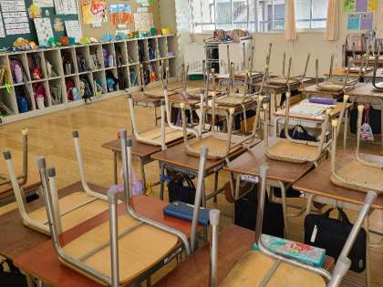 写真下:そうじの準備をして運動場に遊びに行ったようです。教室は空っぽです。