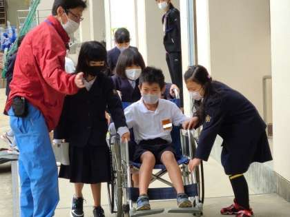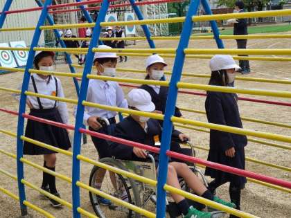 体育館での活動の後、運動場ではグループで体験活動を行いました。