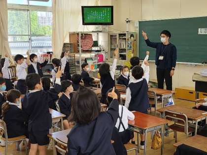 1年3組の様子です。みんなでじゃんけんをしていました。とても楽しそうです。この後何があるのか楽しみです。