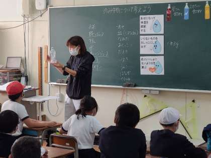 4年2組の食に関する指導の様子です。炭酸飲料に含まれる糖分の量は、スティックシュガー3gがなんと18本分も含まれることにみんなびっくりしていました。