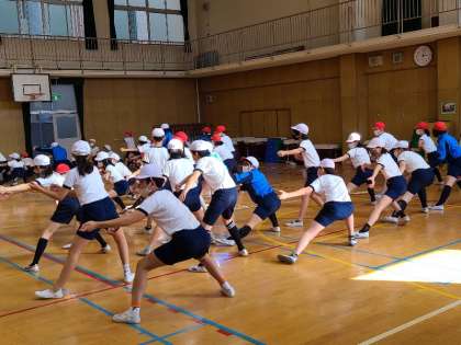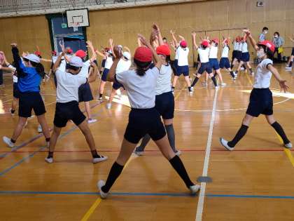 5・6年生の団体演技の練習の様子です。複雑な動きがたくさんありますが、運動会当日は素晴らしい演技を見せてくれると思います。