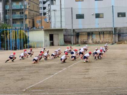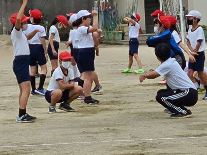 5年生が運動会の練習をしています。グループで演技の確認をしていました。