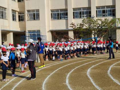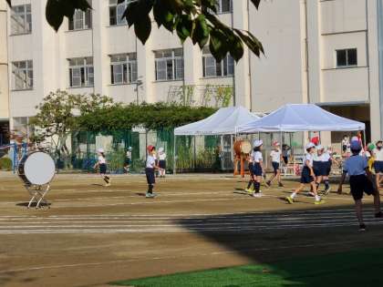 本日1時間目、運動会の全体練習を行いました。朝から運動委員や児童会の子どもたちが準備をしていました。