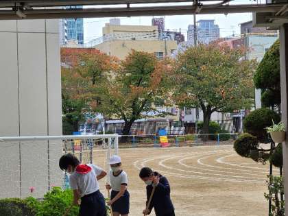 正門にいると、「天小の児童は丁寧にしっかりと掃除をしますね。」と来校者からお褒めの言葉をいただきました。