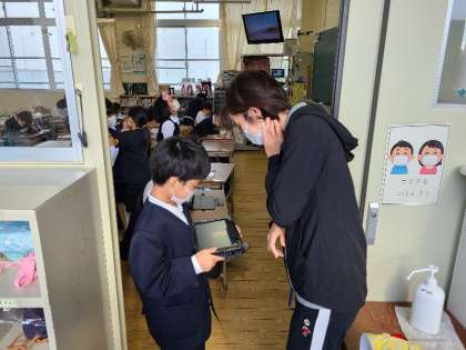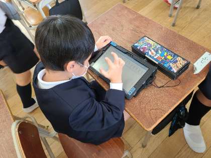 1年3組の様子です。タブレットでデジタル問題をしています。