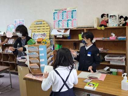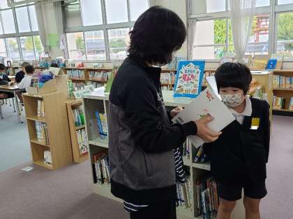 今日は図書館司書の羽山先生に来ていただいています。読みたい本を一緒にさがしてもらいました。