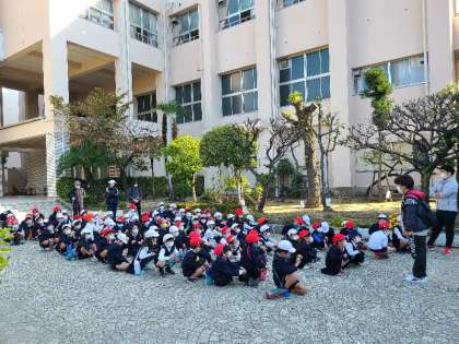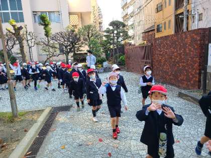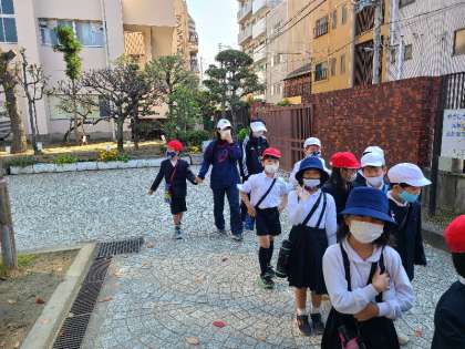 1年生が茶臼山公園にどんぐり拾いに出発しました。