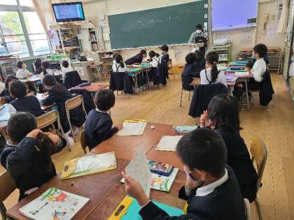 2年1組のせいかつかの様子です。町たんけんについて予習をしていました。