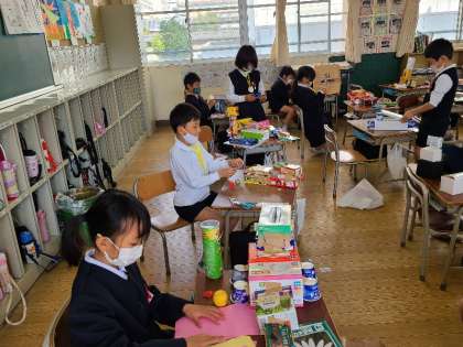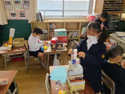 1年2組の図工の様子です。いろいろな創意工夫をして作成していました。