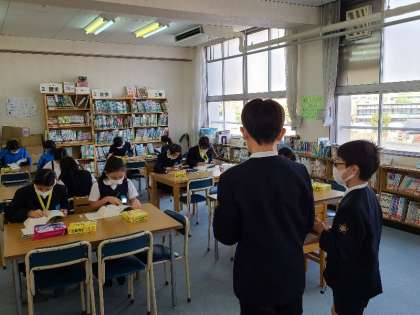 休み時間を活用して、4年生が辞書引き大会を行いました。