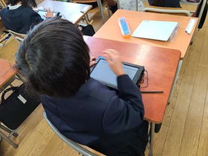 1年3組の国語の様子です。言葉図鑑に言葉を入力していました。学びを蓄積しています。