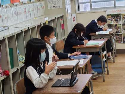 2年1組の算数の単元テストの様子です。できた児童はデジタル問題をしています。