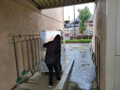 給食を天王寺中学校に運んでいます。本校で作られた給食は天王寺中学校3年生が喫食します。