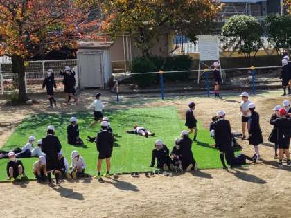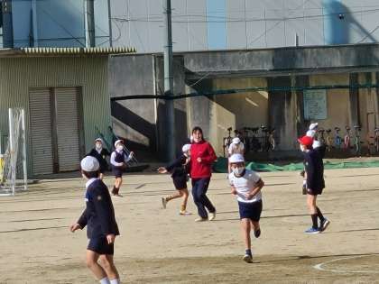 寒さも吹き飛ばして運動場で元気に遊んでいます。